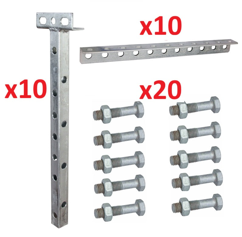 PACK de 10x Corps de Réhausse Poteau Telecom + 10x Traverses + 20x Boulons - Telecom.