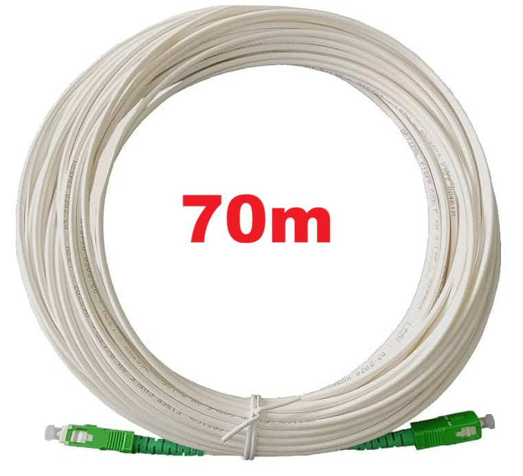 Câble fibre optique intérieur préconnectorisé 70m équipé de connecteurs SC/APC à chaque extrémité ( mâle à mâle ), conçu pour assurer une transmission de données fiables, stables et à faibles pertes. Idéal pour les installations FTTH, réseaux télécoms et infrastructures professionnelles nécessitant une connexion haute performance sur courte à moyenne distance.